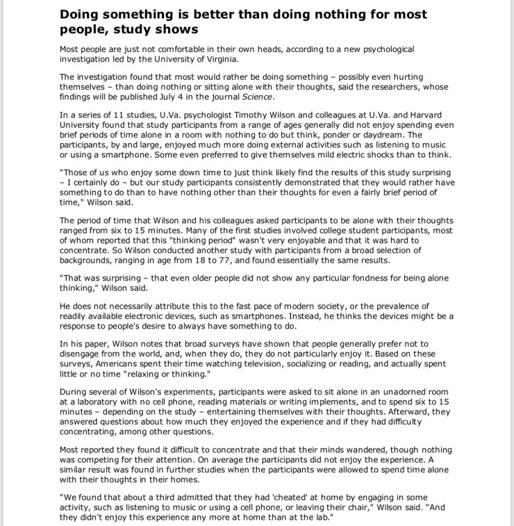 Bugün çalışırken denk geldiğim bir makaleyi paylaşmak istiyorum. Harvard ve Virginia üniversitelerinden araştırmacılar “boş boş oturma” ile ilişkimizi araştırmışlar.